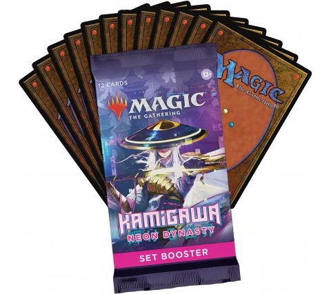 A set boosterbox from Kamigawa: Neon Dynasty contains 30 set of boosters. A set booster contains 14 Magic: the Gathering cards from Kamigawa: Neon Dynasty of which: